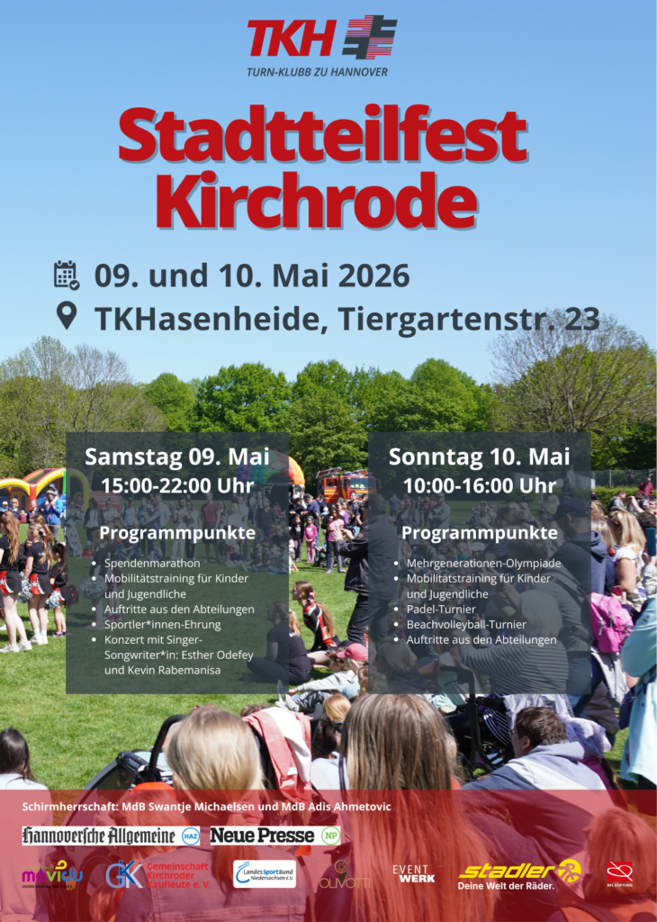 Hannoversche Allgemeine Zeitung (HAZ), Neue Presse, movidu, Gemeinschaft Kirchroder Kaufleute e. V., Landessportbund Niedersachsen, Olivotti, Eventwerk, Stadler und die DFL Stiftung