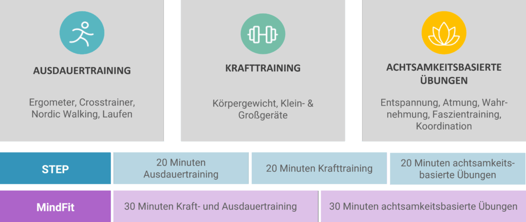 Die sporttherapeutischen Angebote werden von zertifizierten Übungsleiter*innen begleitet, die psychologisch geschult sind und Fachwissen im Bereich von mentaler Gesundheit und verwandten Themen wie Motivation haben. Eine Teilnahme am neuen Angebot ist auch ohne diagnostizierte Erkrankung z.B. bei Stress oder psychischen Belastungen möglich oder wenn eine intensive Betreuung z.B. zur Steigerung der Motivation gewünscht wird und nennt sich dann „MindFit“.